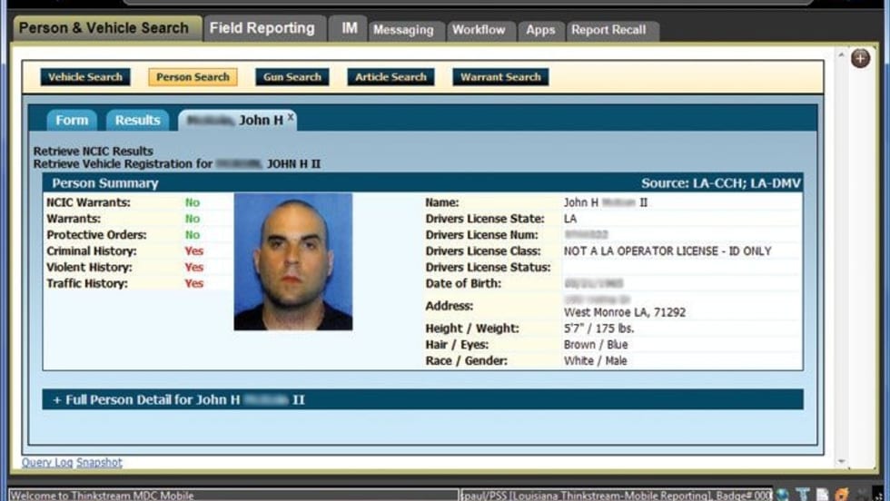 Thinkstream has now connected the databases of 64 parish sheriffs and 200-plus police departments. Integrated Justice allows each agency to control how much data it is willing to share with its neighbors.