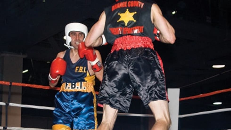 The first bout featured Dave "Knockout" Apodaca of the LASD vs. Dustin "The Nosebleeder" Ciscel of the Anaheim Police Department. In the second fight, Armando "The Hitman" Guzman of LASD squared off against George "The Argentinian Olympian" Lopez of the Los Angeles Police Department. And in the final contest Mike "Machete" Giacoletti of the Orange County Sheriff's Department battled Carlos "Chupacabra" Navarro, a special agent with the FBI.