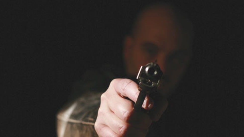 Barton's gun swung toward him, and its barrel spit fire. Flashes of amber split the night as Barton's Ruger blazed at Dunnigan a mere 10 feet away.