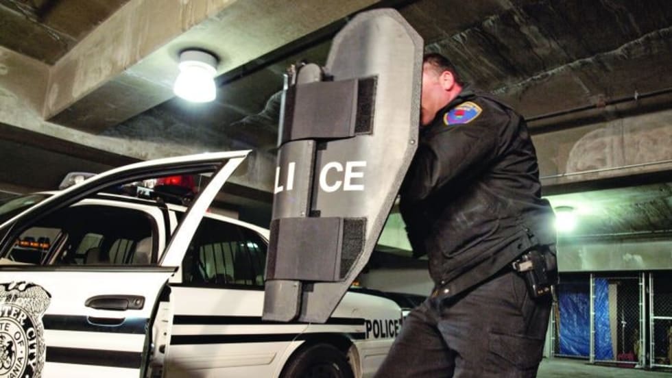 Newer shields developed with patrol officers in mind are lighter weight and designed to allow officers to shoot while carrying them. They can also easily fit in a patrol car.