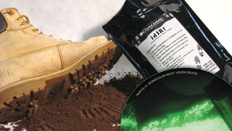 Wouldn't it be great if you could prove a suspect had been at the scene of a crime by following a pathway of telltale glowing light found on his clothing or vehicle after the fact? That's what Cyalume's idIRt can do.