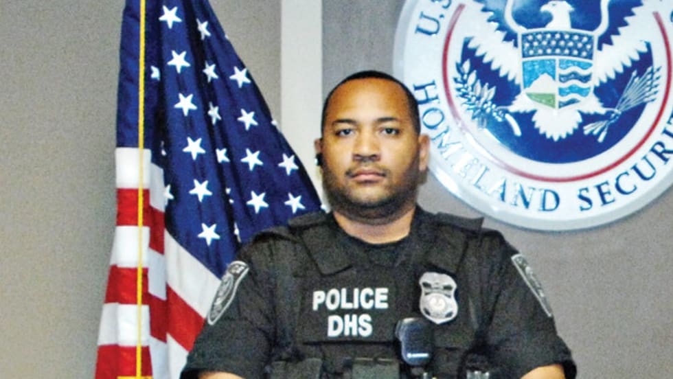A young neighbor came to the door of Inspector Anton Sampson of the Federal Protective Service, Department of Homeland Security, and told him a man was holding her friend at gunpoint in the house down the street. He rushed to the girl's aid and brought her to safety.