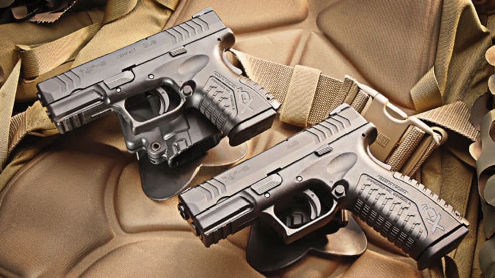 As you probably have already noticed, the XD(m) 3.8 and the XD(m) 3.8 Compact get their names from their 3.8 inch-barrel, as opposed to the four-inch barrel standard on the original XD Pistols. The Compact designation is assigned to the 3.8 Pistol, which has the short "Compact/Sub Compact" style grip.