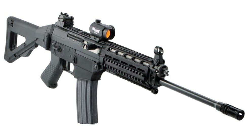 Don't let the name "Patrol" fool you; the SIG 556 Patrol is well suited for tactical team use as well. The new SIG 556 Patrol Rifle comes in two versions: the standard model and the SWAT model. The SWAT model is equipped with a quad rail for the attachment of accessories.