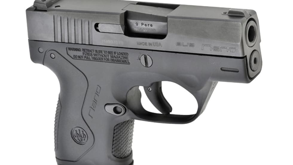 Many officers and concealed carry civilians are not very fond of small-caliber pocket pistols such as .380s and .32s, which is why Beretta chambered the Nano for the 9mm and .40 S&W cartridges.Is the Nano truly "tiny?" Well with an overall length of only 5.6 inches, a height of 4.2 inches, and a width of less than an inch, the answer is "Yes."