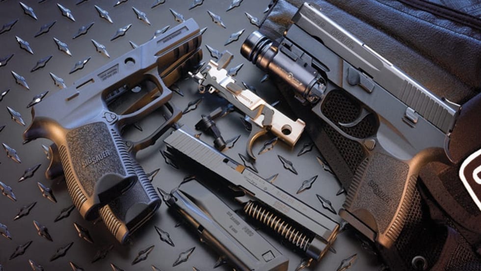 With its new P250, SIG Sauer has embarked upon a completely novel concept in semi-automatic handguns—the modular pistol. The P250 is based upon a polymer grip module and metal frame/fire control assembly. This assembly is in fact the “pistol,” as it bears the serial number, which can be removed and inserted into another grip module.