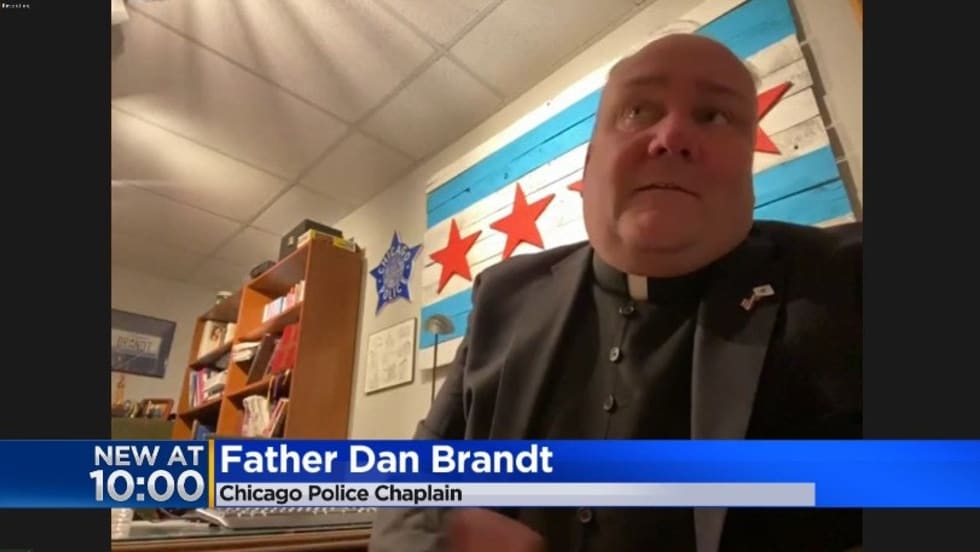 "Fr. Dan Brandt #ChicagoPolice Chaplain, removed his priest collar and put on his superhero cape, by risking his own safety in removing and assisting an injured driver from their vehicle in a rollover accident on the Kennedy Expy on 2/17. Fr. Dan called EMS to the scene."