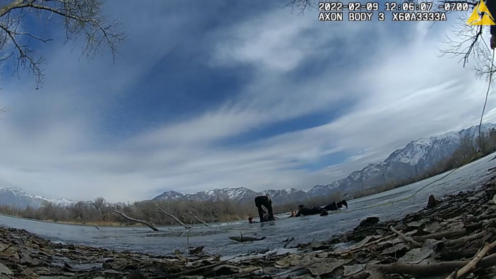 When police arrived, one of the victims was already out of the water, but the second victim was still trapped in the ice.