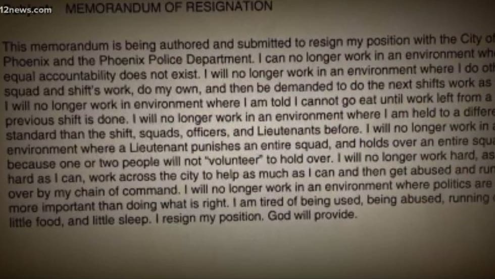 Over the next minute, the dispatcher and another unidentified officer tell Rine the whole shift is working late. Rine: “33 Henry - I’ll be going upstairs to fill out my resignation letter then.”