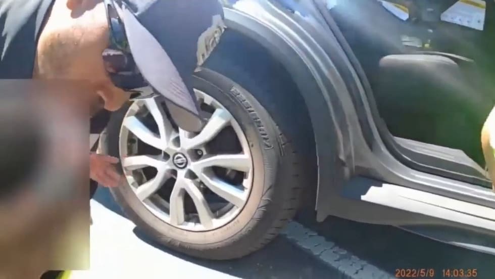 Officer Rodriguez requested an ambulance while Officer Charles removed the baby from her car seat, placed her face down on his forearm, and begin patting her on the back to clear her airway.