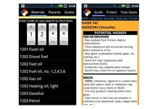 The developer has included pictures of different placards and different types of carrier vehicles, which can be helpful in identifying what you're seeing. There's also a search function so you can type or provide voice data to search the ERG. This developer has also kept the app updated to provide appropriate information.