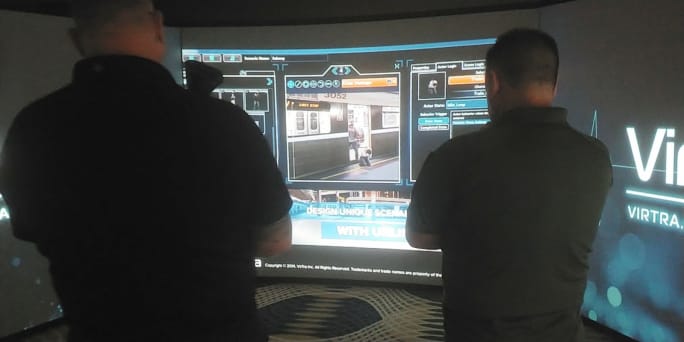 The scenario was fun to watch, but what was more fascinating was a behind-the-scenes look when the VirTra trainer showed the controls and how he could add, delete, or change characters and situations in his computer menu.