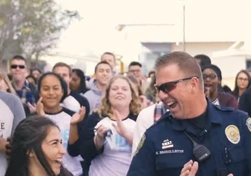 Just ask Officer Mitch , who works at Heritage High School in the San Francisco Bay Area. The way the kids there said thanks was truly EPIC — watch the video above to see what they did.