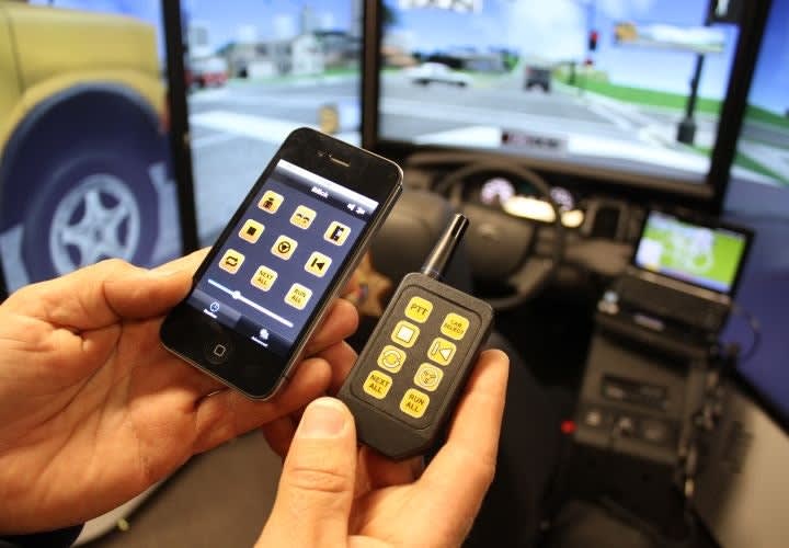 LAPD EVOC instructors can control driver training scenarios via an iPhone app. Photo: Paul Clinton