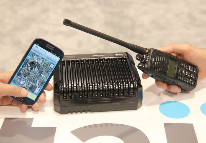 Tait Communications introduced its new portable P25 Phase 2 radio (TP9400) with built-in GPS and a rugged grill designed to shed moisture. Tait also unveiled its Total Connect system, which incorporates a two-way P25 radio, Wi-Fi router, and dual-modem system supporting Band 14 and commercial cellular networks. It also includes a smartphone app, allowing officers to communicate with a smartphone via a push-to-talk methodology.