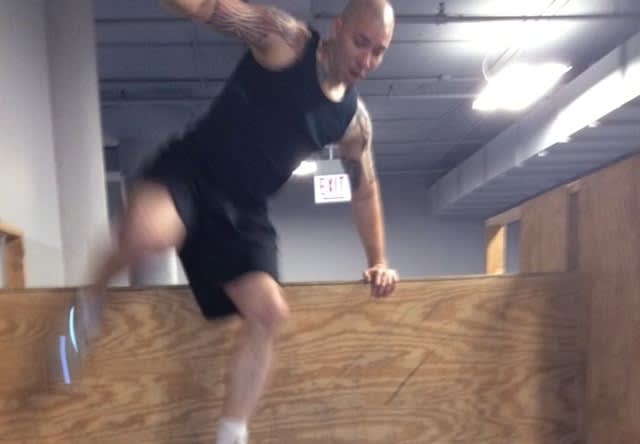 Purkiss began a training regimen in late 2011 to prepare himself for the Spartan Death Race. He scales a six-foot wall 50 times to warm up for his workout. Next, he walks with weight, carrying two 50-pound dumbbells for a mile. Finally, he turns his attention to resistance training known as California ropes—a 40-pound shipping rope folded in half that's attached to a wall. Purkiss manipulates the ropes in a variety of ways to cause stress and fatigue to multiple parts of his body.