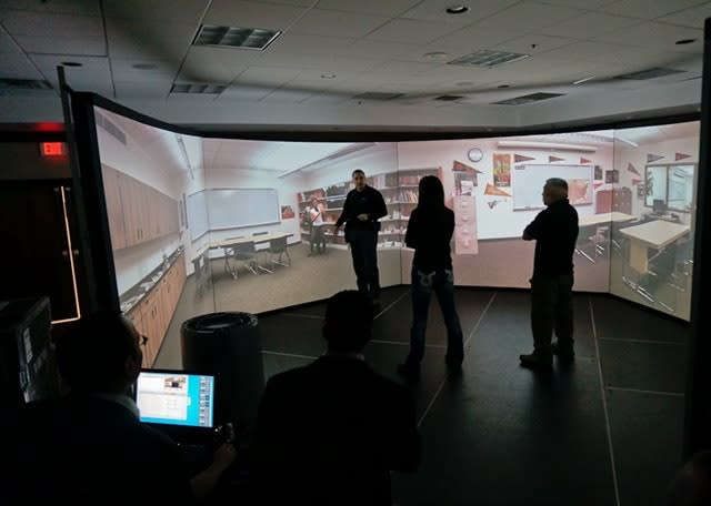 Firearms training simulator maker VirTra set up its new equipment for the show at the Westin and had a good turn-out to see the V100 and V300 demos. The video scenarios were impressive, and not surprisingly, the company shoots the simulator videos in ultru-high def 5k format. VirTra's law enforcement reps boasted ballistic accuracy at .08mil on the V100 system they had set up.