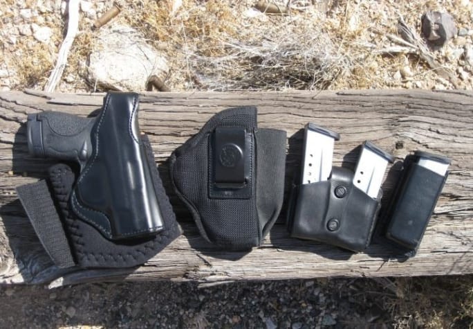 While field testing the 9mm M&P Shield, I carried this pistol for several weeks in a DeSantis N87 Pro Stealth inside the waistband nylon holster with a single magazine pouch attached to the front of the holster. The DeSantis N87 fastens to my pants belt using a fairly wide metal clip that holds the holster firmly and comfortably in place for hours.