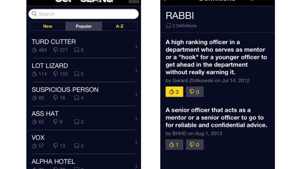 On Monday, Police Magazine launched the Cop Slang app for the iPhone. Cop Slang on the iPhone is a handy little dictionary-style app that lets users read more than 2,500 definitions and add their own.