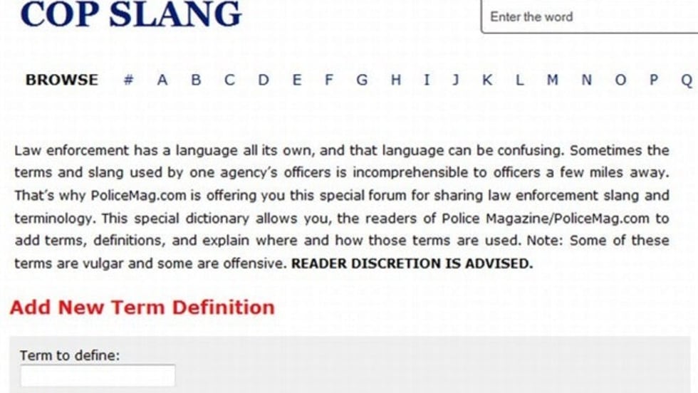 Read More →Police Magazine has introduced a new user-interactive dictionary to PoliceMag.com that allows officers to search for terms and enter their own terms and definitions.