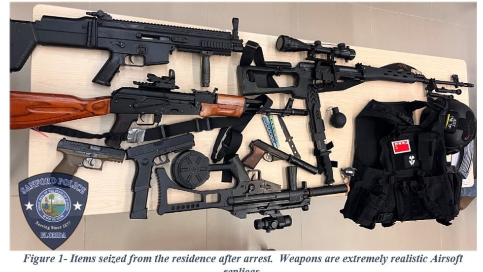 When police searched his home, they found airsoft weapons and an airsoft vest. They also seized a laptop, iPhone, a knife and a notebook from the house.