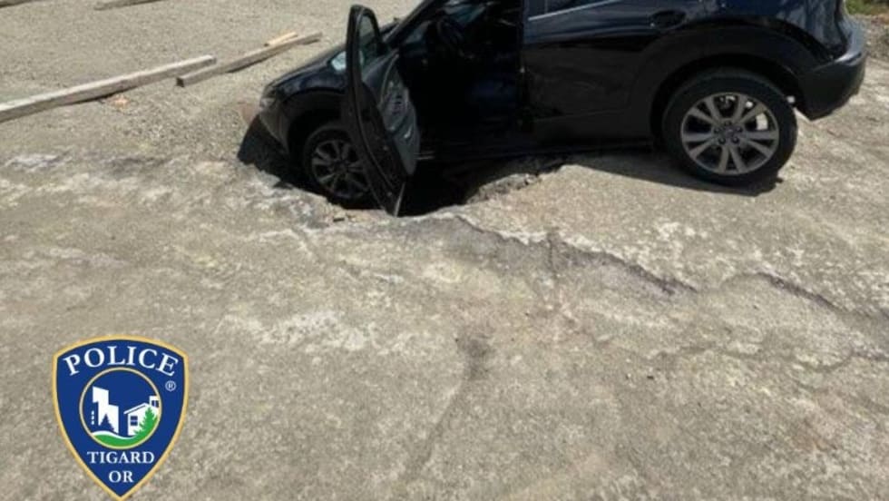 Oregon Bank Robbery Suspect Drives into Hole During Pursuit