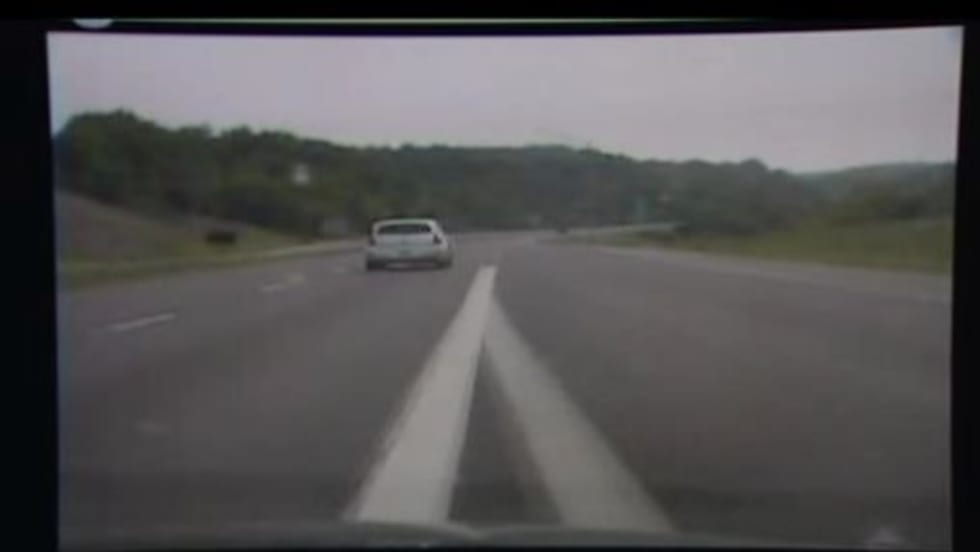 The footage from the patrol car of Officer Trenton Herr shows the erratic, high-speed driving of Cody Wilcoxson, 31, who fired an AK-47 at pursuing officers while driving at one point.