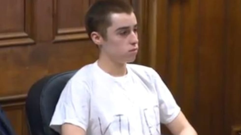 The Ohio teenager who killed three classmates in a cafeteria attack a year ago showed no remorse as a judge gave him three life terms in prison on Tuesday. During sentencing, 18-year-old T.J. Lane wore a T-shirt with the word "killer" on it.