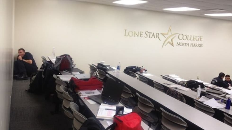 At least three people have been shot at a community college in north Harris County on Tuesday morning. One suspect has been detained, and police are searching for a second suspect.
