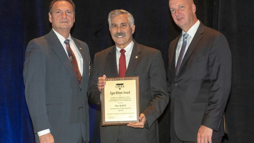 Last week Scottsdale, AZ, Police Chief Alan G. Rodbell was awarded the "Egon Bittner Award" for his significant contributions to the public safety profession and to CALEA.