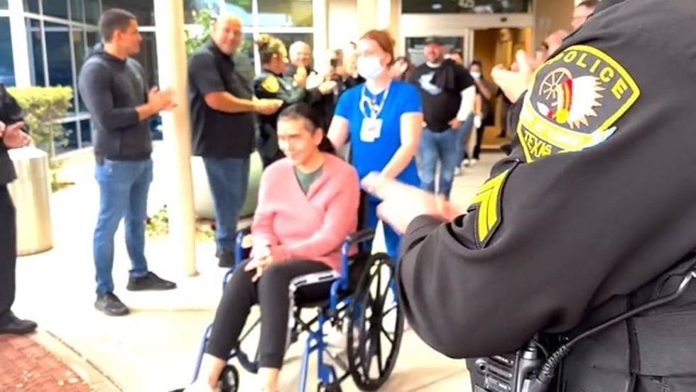 Sansom Park police officer Lina Mino was released from in-patient rehab on Friday after being shot in the face during a training exercise last month.