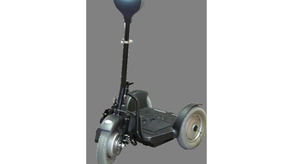 EV Rider's MAXscooter is powered with a 500-watt motor and can travel at speeds of up to 15mph for 20 miles before needing a charge. The removable battery can be re-charged on board or in another location.