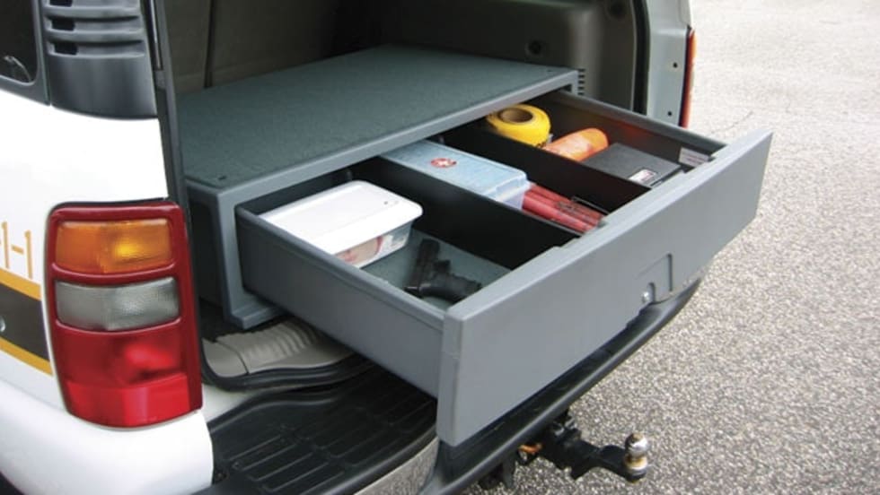 Adamson Industries’ Cargo Caddy is an economical solution for storing equipment in the rear cargo areas of SUV public safety vehicles. It adds more storage space and organizes equipment for public safety SUV fleets. The Cargo Caddy is made with an automotive-grade, rugged plastic with structural ribs on all surfaces for rigidity and strength, and is accessed with a steel latch handle.
