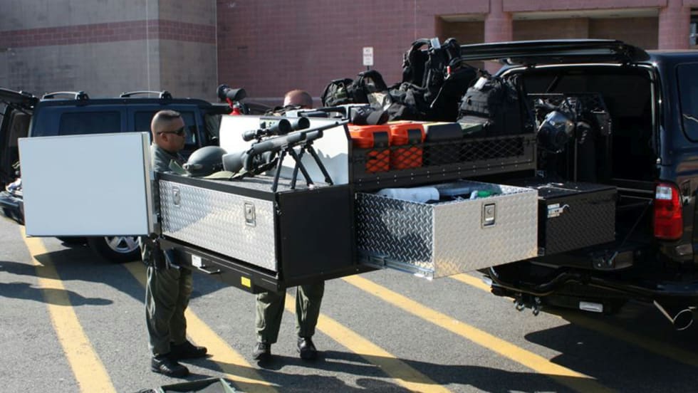 Extendobed's US C SOG slide-out is designed to be a SWAT team's dream. This unit is highly durable and can extend over 100%, complete with a command center for law enforcement personnel.