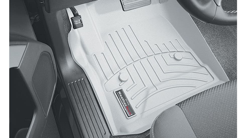The custom-fit liner helps protect the interior carpet up the front and back sides of a vehicle's foot well.