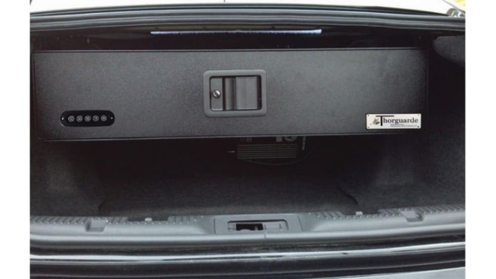 Dual Federal Motor Vehicle Safety Rated rotary latches and shoulder pins make this weapon storage vault virtually impossible to pry open.