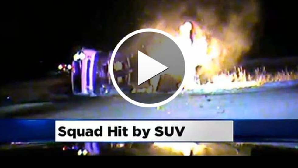 Reserve officer Paul Dial was on patrol late Wednesday night when his squad car was hit by an SUV. He was trapped inside when the squad burst into flames.