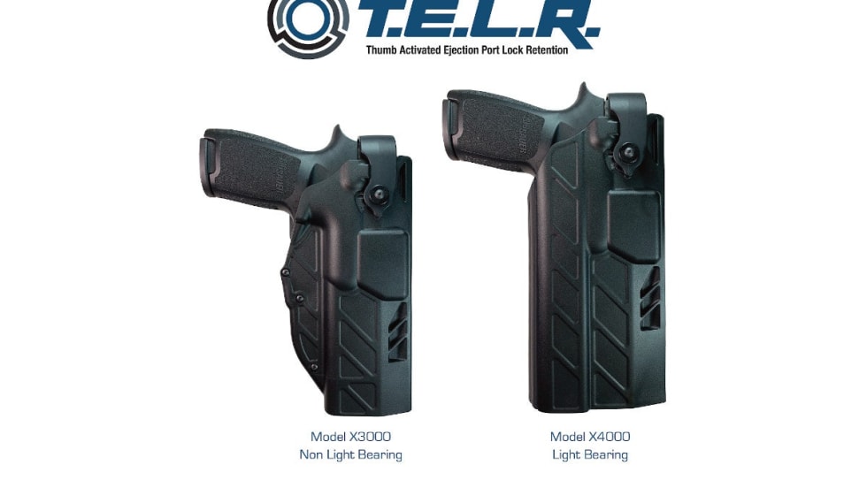 The T.E.L.R. Level 3 Duty Holster is available with a variety of duty belt hangers and is compatible with several popular modular platforms.