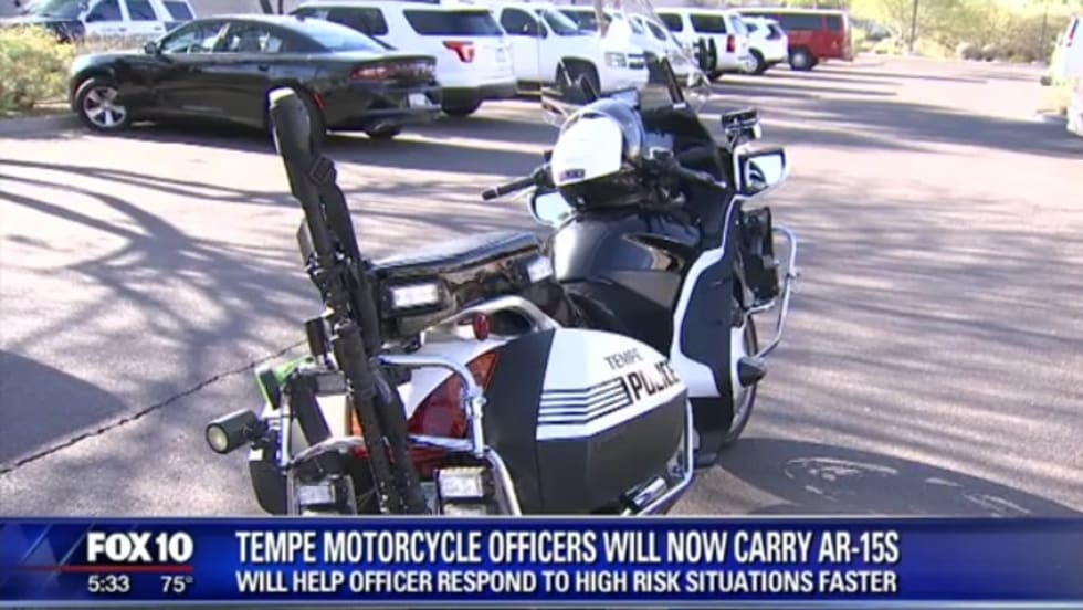 Tempe, AZ, police say eight of the department's motorcycles have been equipped with AR-15 carbines to provide officers with more firepower should they need it.