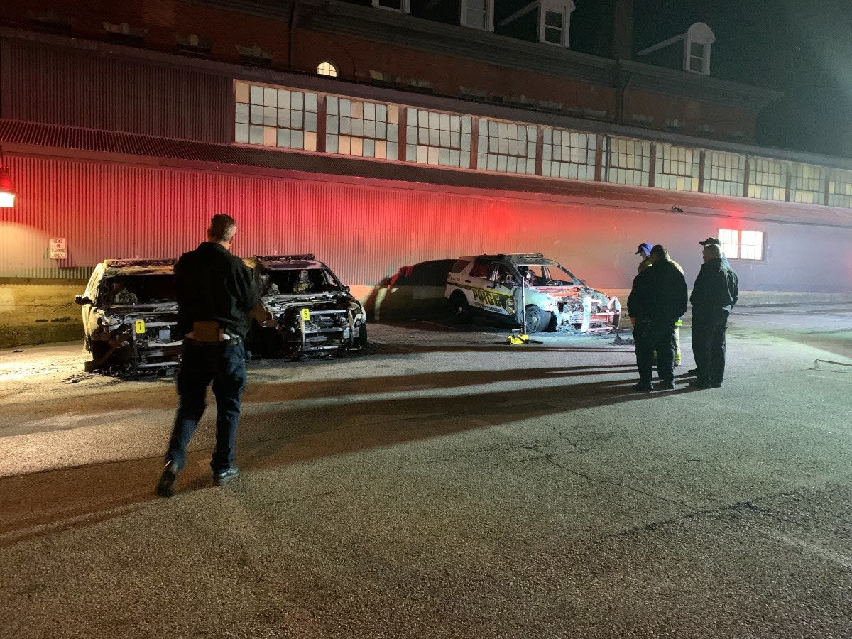 Just after 2:30 a.m., Pittsburgh Bureau of Fire and Pittsburgh Police responded to the parking lot directly adjacent to the Police Training Academy, police report. The three police cars were fully engulfed in flames.