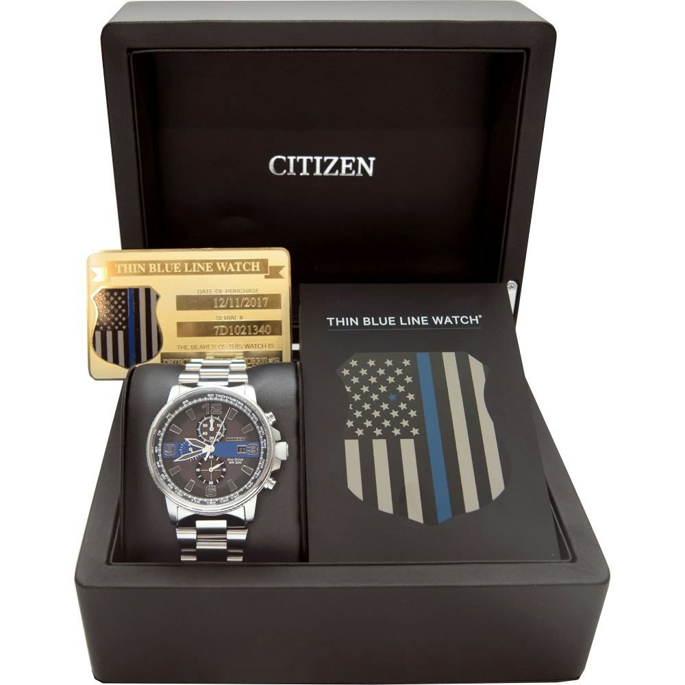 "Citizen recognizes the bravery and dedication of service men and women, who risk their lives for the safety of everyday citizens," the company said. "In celebration of these heroes, Citizen has designed these special edition watches featuring the iconic thin blue line and thin red line on the watch faces, as well as unique insignia on the engravable case backs. Each timepiece is presented with special packaging and customizable gold-tone card with engraving offered by Citizen."