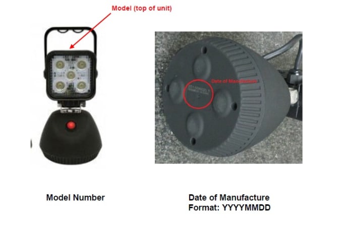 This recall applies to worklamps manufactured on or before November 19, 2015 with the following model numbers: