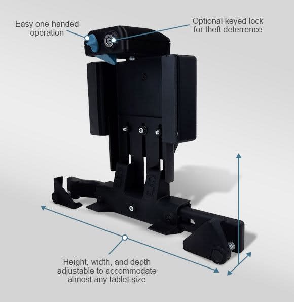 Designed and tested to MIL-STD 810G shock and vibration standards, the company says the cradle is rugged enough for your mobile work environment. Combine the Universal Tablet Cradle with Gamber-Johnson mounting equipment to build a complete mobile tech solution for your needs.