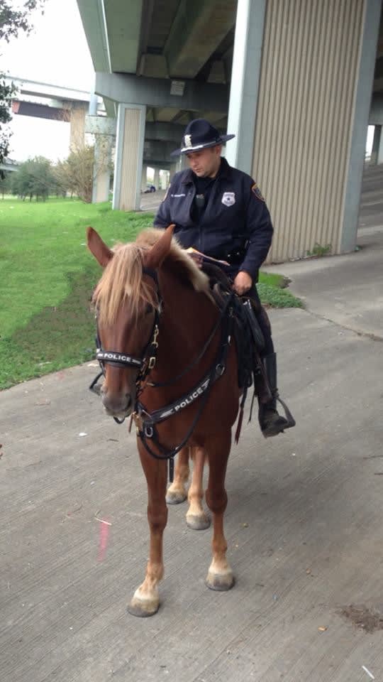 In an emotionally captured moment of time, a Houston, TX, police officer lies down next to his fallen horse on Thursday after the horse spooked, ran into the street, and was hit by a truck. Charlotte's human partner stayed with her, patting her gently on her mane and reassuring her that she had been a great companion and an officer, reports Examiner.com .