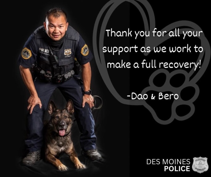 Facebook image from the Des Moines Police Department showing Officer Dao Meunsaveng and K-9 Berro.