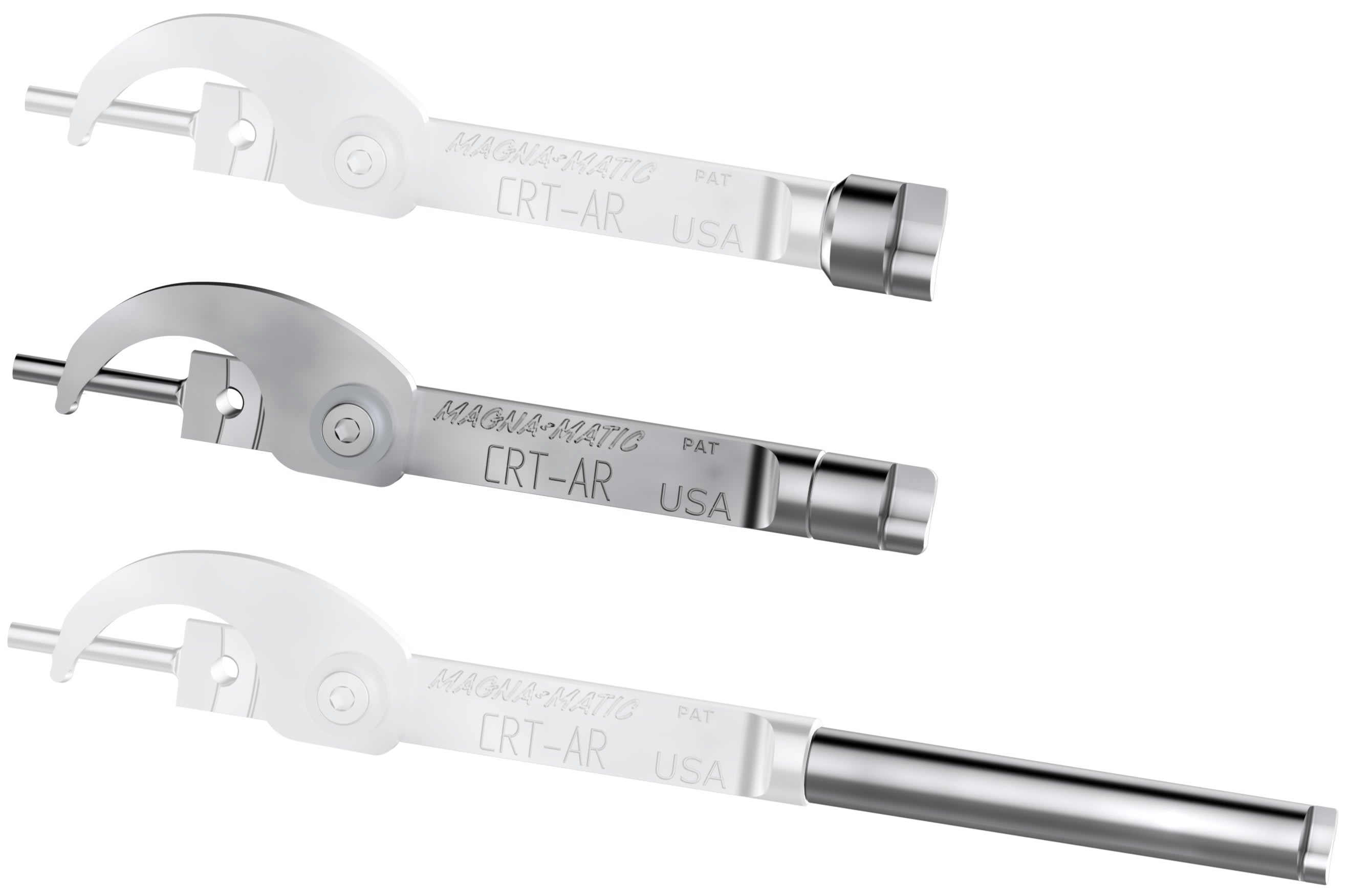 The company says its engineered "dead-stop" reamer design fits into the bolt carrier front and rear to remove the carbon from deep dead-end holes without cutting metal. The adjustable arm of the CRT-AR is designed to function like a small hand-held lathe to clean any bolt tail radius. According to Magna-Matic, this distinctive design which can accommodate the wide range of different bolt tail radii sets the CRT-AR far apart from other companies' form tools.