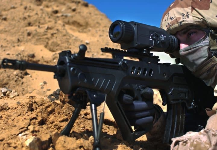 Meprolight's NOA NYX uncooled thermal weapon sight with 2x magnification was developed for precise target detection and engagement in dust, smoke, and darkness. It weighs less than 2.2 pounds and uses high-resolution microbolometer technology to ensure clear and consistent results. The flexible unit can be used as a hand-held device or fitted to light machine guns, assault rifles, and sub-machine guns. It's also suitable for sharpshooter rifles with an x2 and x4 digital zoom.