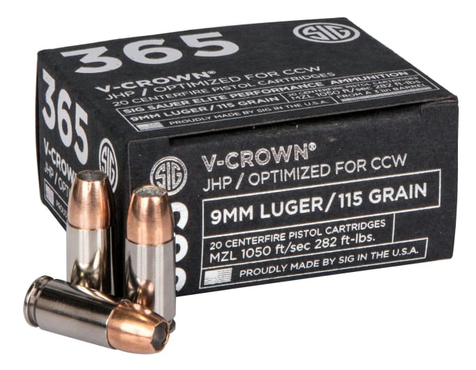 SIG Sauer Inc. has introduced new, high-performance SIG 365 Elite Performance Ammunition in 115-grain 9mm SIG V-Crown and SIG FMJ loads. Designed for optimal performance in short barrel, concealed carry pistols, such as its namesake – the P365 high-capacity, micro compact – SIG 365 ammunition uses low-flash, clean burning powders for maximum performance and shootability.