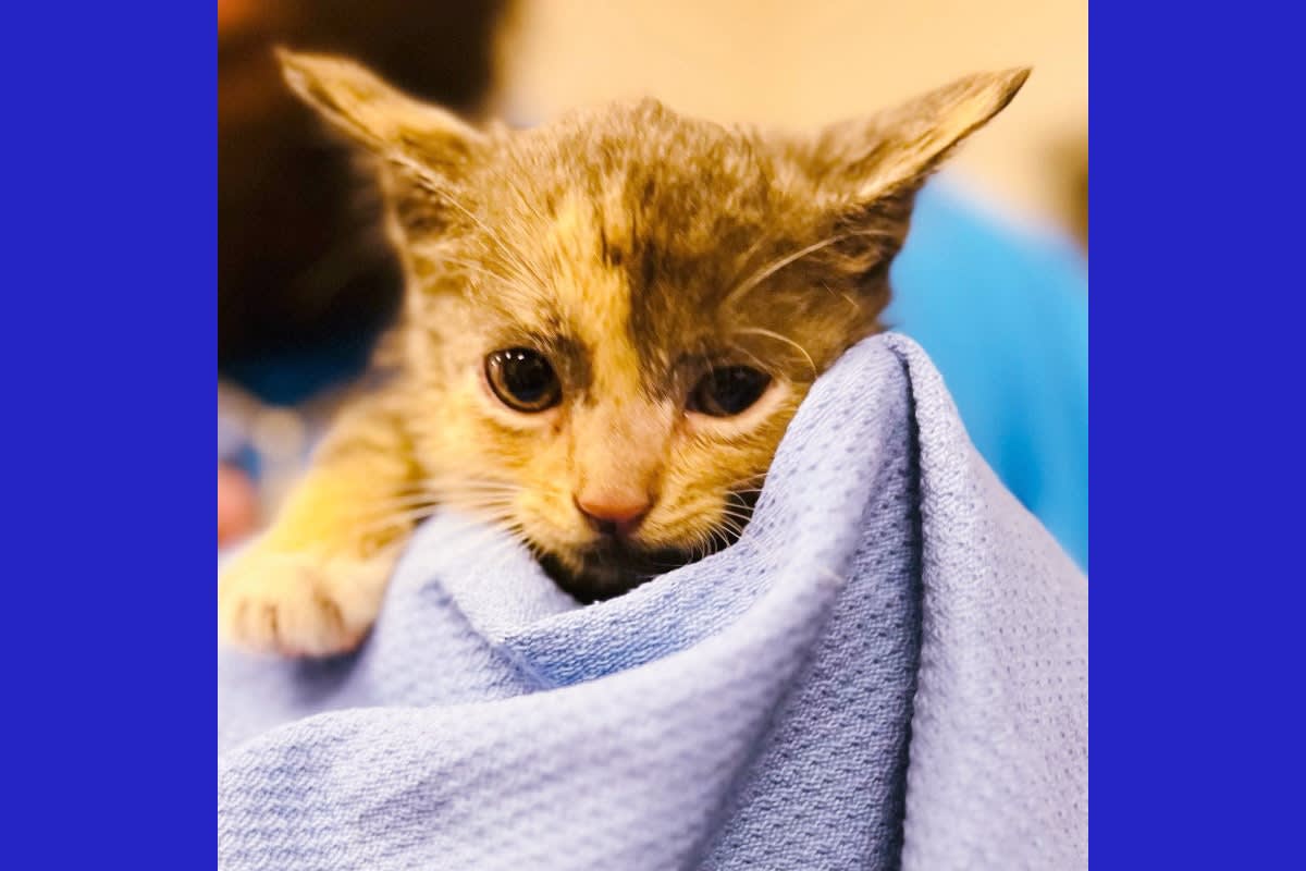 According to the Tampa Police Department , two officers were patrolling during the storm and spotted a kitten alone and scared in the middle of the roadway.