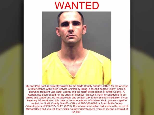 Smith County Sheriff Larry Smith said Wednesday that thanks to tips from the community, officers have been able to focus on Smith, Wood and Van Zandt counties as they search for Michael Koch, who is suspected of fatally shooting Ogar, a Belgian Malinois.